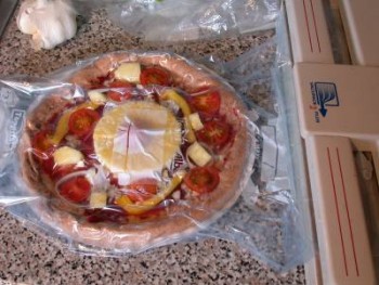 - Die einzufrierenden Pizzen mitsamt dem Pappteller in einen 6-Liter-Gefrierbeutel schieben und mit dem Vakuumiergerät möglichst luftleer (verhindert Eiskristalle) einfrieren.